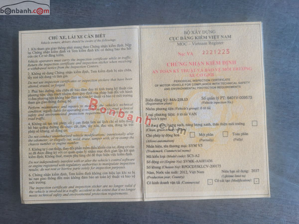 Xe SYM V5 1.5 MT 2012 - 86 Triệu
