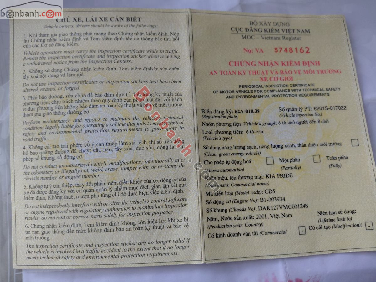 Xe Kia Pride CD5 2001 - 49 Triệu