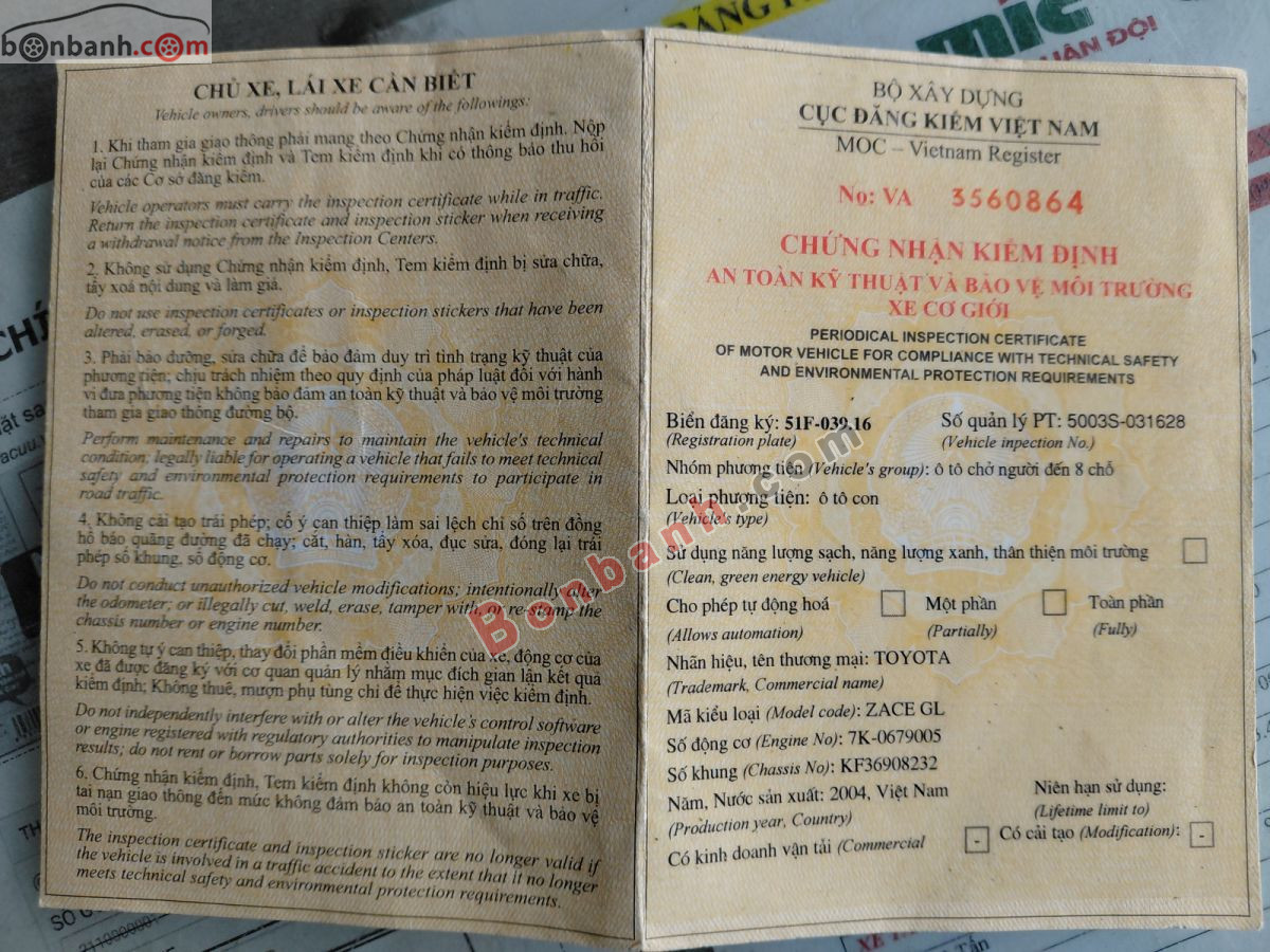 Xe Toyota Zace GL 2004 - 135 Triệu